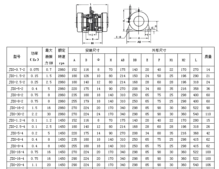 - 產(chǎn)品簡介:JZO振動電機(jī)和很多型號的電機(jī)是通用的,振動電機(jī)的激振力采取的是無極調(diào)節(jié),使用非常方便。